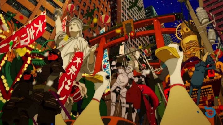 Visually, the parade sequence is a stunning example of Kon’s ability to create a sense of fluidity and transformation in animation. The objects and figures in the parade are constantly shifting and evolving, with new elements being added as the parade moves through different environments. This sense of constant movement and change mirrors the fluid nature of dreams and reinforces the film’s central theme of the blurring of boundaries between fantasy and reality.